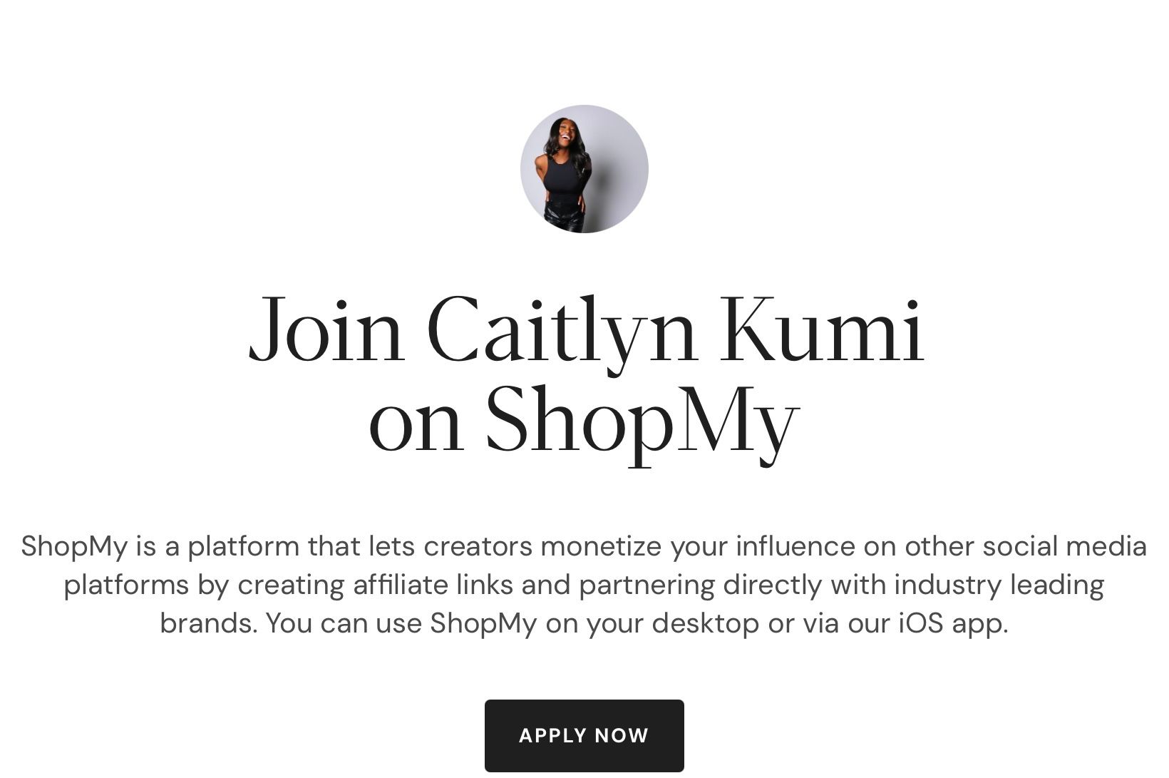Caitlyn Kumi, founder of Miss EmpowHer, is leveraging ShopMy to monetize her influence. ShopMy lets creators partner with top brands and earn through affiliate links, all from your desktop or iOS app.
